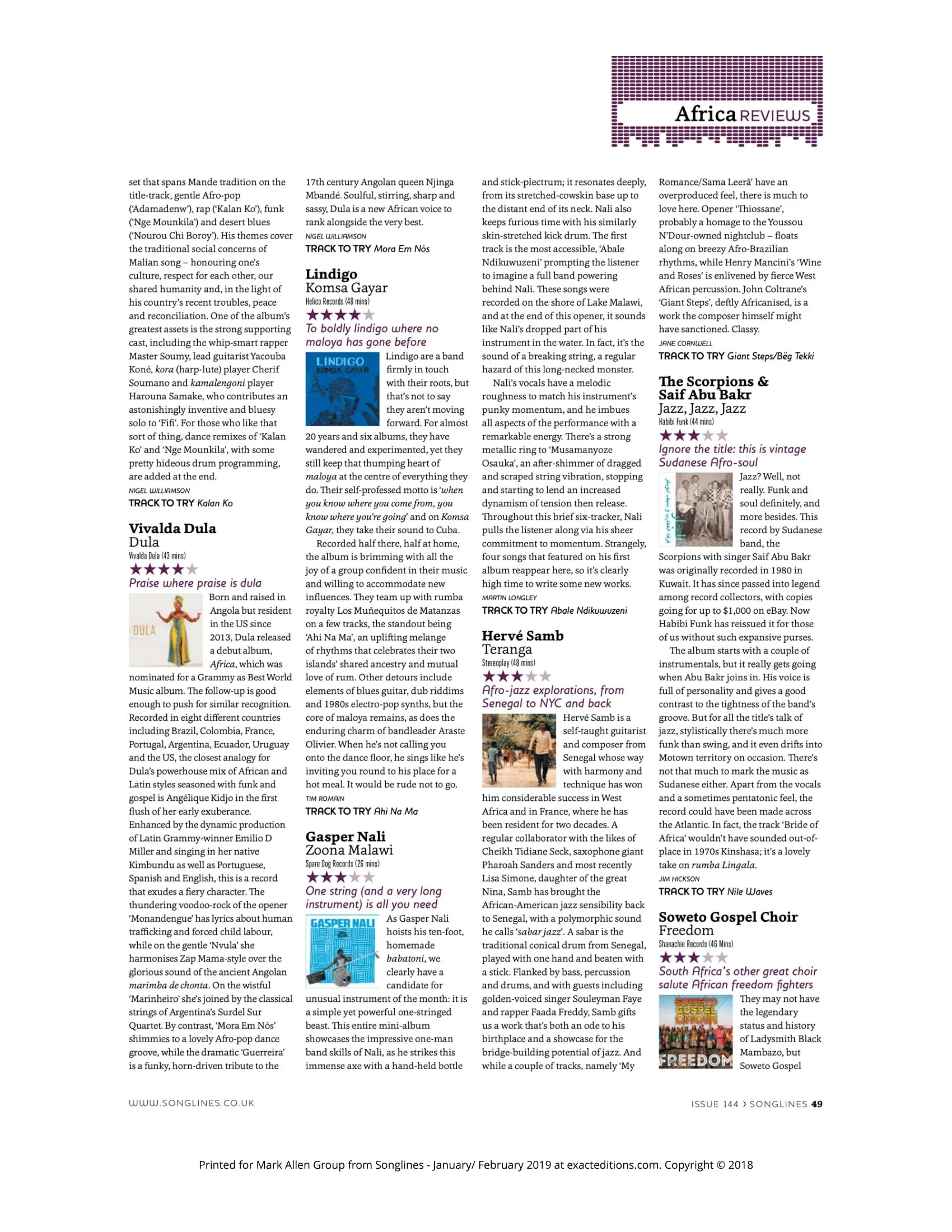 Album DULA honored with a full page at Angola main newspaper ´Jornal de Angola´